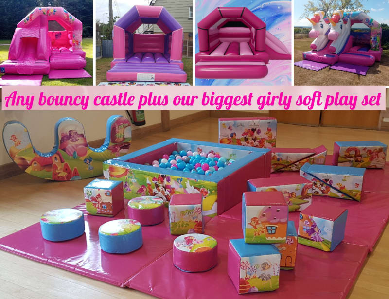 Please SELECT the bouncy castles at CHECK OUT. If you are selecting the following bouncy castles you can choose the theme for your castle at the end of the booking form. 11x15 Pink&Purple, Side Slide Pink